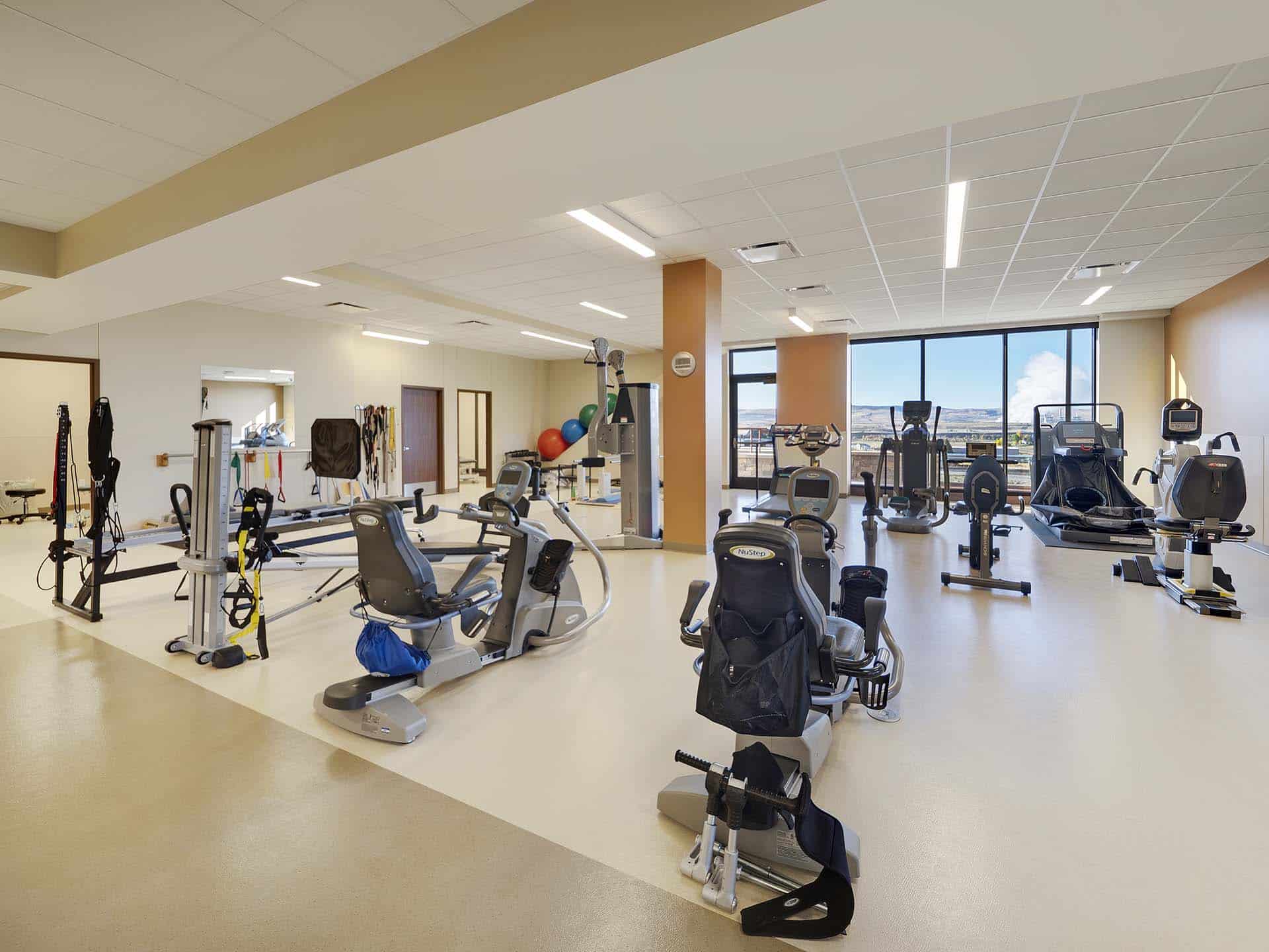 The 1st floor houses the infusion area, physical therapy and cardiac gyms, treatment, and procedure rooms, 13 exam rooms, a pharmacy, lab, imaging room and seven offices. The 2nd floor has three procedure rooms, newborn procedure, stress echo, 38 exam rooms, and 13 offices. The 1st and 2nd floor include pharmacy, infusion, PT, and outpatient clinics. The 3rd floor is approximately 20,000 SF of shell space but will house hospital administration in the future.
